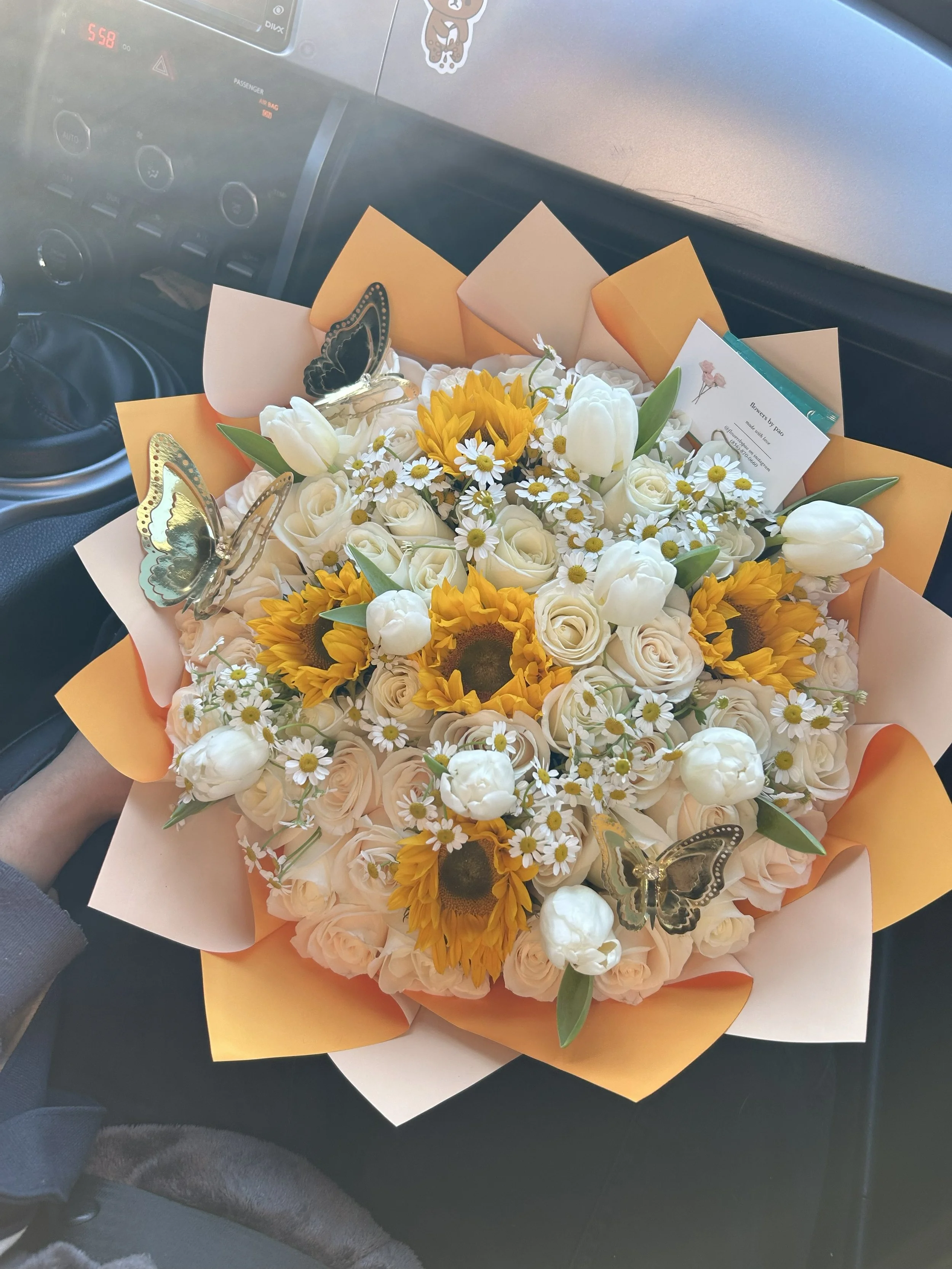 Categories: All Money Bouquet Large Medium Small All | Money Bouquet | Large | Medium | Small | Pure Sunshine $140.00 Pumpkin Patch Blooms $182.00 Farmhouse Charm $207.00 Coffee & Cream Blooms $178.00 Glowing Grace $150.00 Monarch Blooms $96.00 The Floral Basket $160.00 Radiant Garden Florals $164.00 Blooming Yellow $40.00 Honeybee Blooms $166.00 Heart of Sunshine Blooms $158.00 Bloom & Bow Boutique from $76.00 Blue Buddy Blooms from $142.00 *PRICE DOES NOT INCLUDE MONEY* Romantic Stems $135.00 Snoopy & Petals $190.00 Bloom Your Letter from $275.00 Petal Letters from $138.00 Pastel Bloom Boutique from $145.00 Frosted Petals from $90.00 Blushing Rose Florals from $55.00 Spark Petals from $82.00 Floral Fortune from $171.00 Red Luxe Blooms from $125.00 Blush & Lily from $84.00 Elegant Expressions from $140.00 Elegant Heart Blooms from $136.00 Blooming Bucks from $165.00 Love in Letters from $240.00 Vibrant Stems from $250.00 A Dozen Red Roses from $45.00